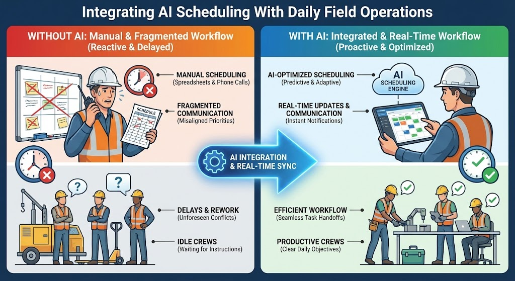 The most effective AI scheduling software isn’t just a planning tool — it’s a live extension of daily jobsite management. When integrated with field reporting, delivery tracking, and safety systems, it ensures that every part of the project is synchronized.