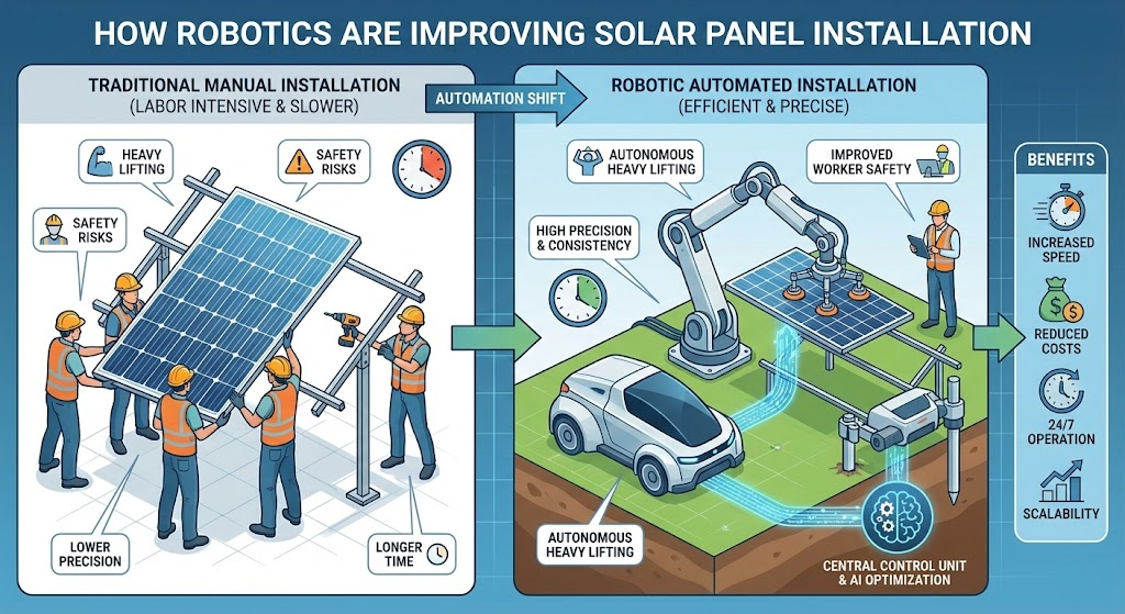 Traditionally, solar panel installation has been labor-intensive, requiring teams to manually position, mount, and secure thousands of panels across vast land areas. Robotics are transforming this process by automating repetitive tasks, reducing installation time, and improving accuracy.