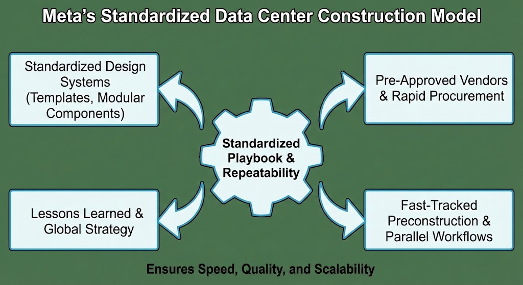 This strategy minimizes design risk and accelerates project mobilization. It also allows the company to work with a trusted group of vendors and trade partners who are already familiar with expectations. Instead of reinventing workflows for each new location, Meta focuses on execution—building faster while maintaining quality.